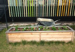 Gemeinsam mit einem Vater, der Gärtner ist, haben wir unser eigenes Hochbeet im Garten unserer Einrichtung angelegt.