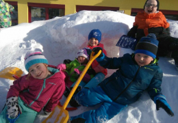 Der tiefe Winter dieses Jahr lässt die Kinderherzen höher schlagen. Mit viel Spaß und Bewegung werden unsere Schneeberge bewältigt.