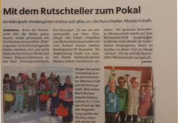 Im Kindergarten Zederhaus wurde im Februar in den Lungauer Nachrichten von der ausgetragenen Rutschteller-Meisterschaft berichtet - ein b