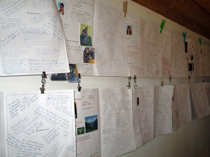 Anhand eines „Steckbriefes“ erzählt jede von uns Persönliches (Was hat mich in meinem Leben besonders beeindruckt? Wo halte ich mich am Liebsten auf? Was kann ich gut?). Ergänzt werden diese bunt gestalteten Seiten mit Kommentaren (Wie siehst du mich?) – und zu lesen, was die Kolleginnen an mir schätzen, ist wie eine warme Dusche für die Seele.