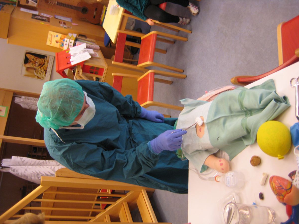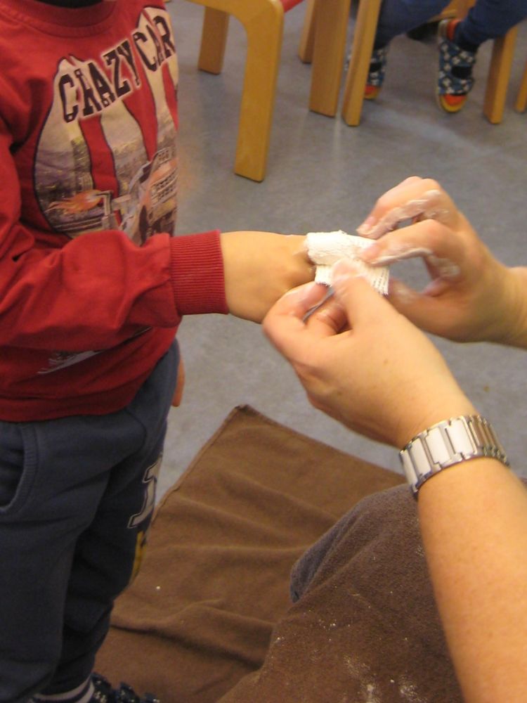 Am 5. Februar besuchte uns die mobile Gipsambulanz im Kindergarten Baron Schwarzpark. Gemeinsam mit der Krankenschwester Daniela und den beiden Stoffpuppen „Patientin Lotta“ und „Doktor Max“ lernten die Schulanfänger aus der Eulen- und der Löwengruppe vieles über den eigenen Körper. Ebenso brachte die Krankenschwester echte Instrumente aus dem Krankenhaus mit in den Kindergarten. Alles dazu da, um von den Kindern selbst ausprobiert zu werden. Mit großen Augen fühlten die Kinder ihren eigenen Puls, wir operierten die Patientin Lotta und als Überraschung gab es zum Abschluss für jedes Kind einen echten Gips am Zeigefinger!