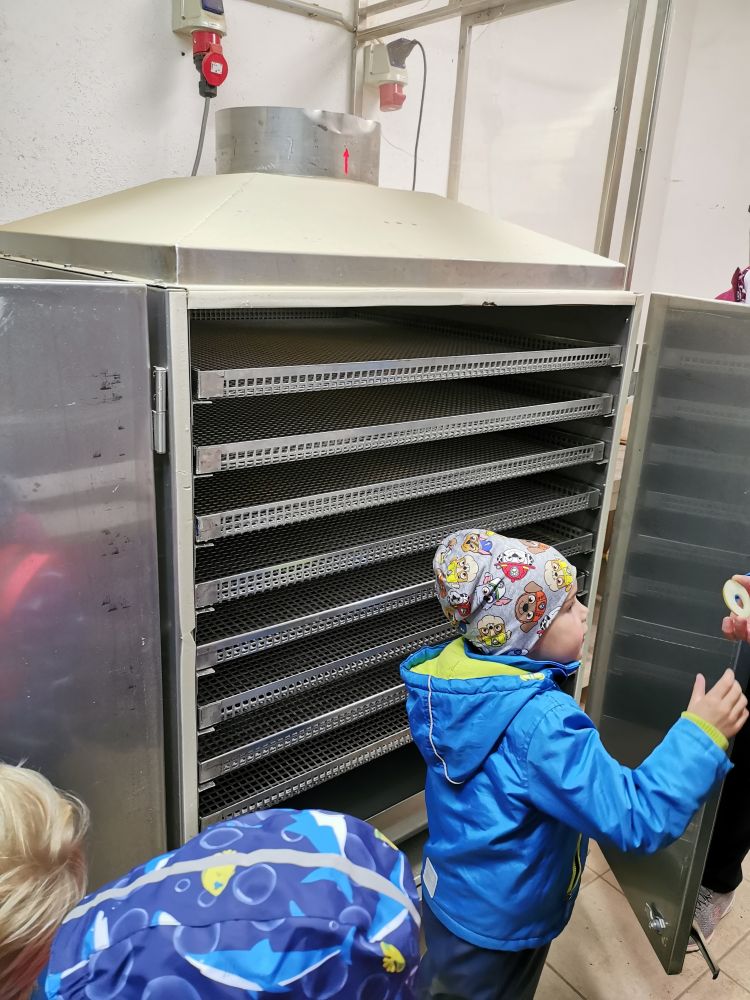 Die Apfelspaltenmaschine und der große Dörraperat begeisterte uns besonders. Zuletzt wurde unser Wagen mit Apfel- und Birnensaft, mit Apfelchips und Apfelmüsli befüllt.