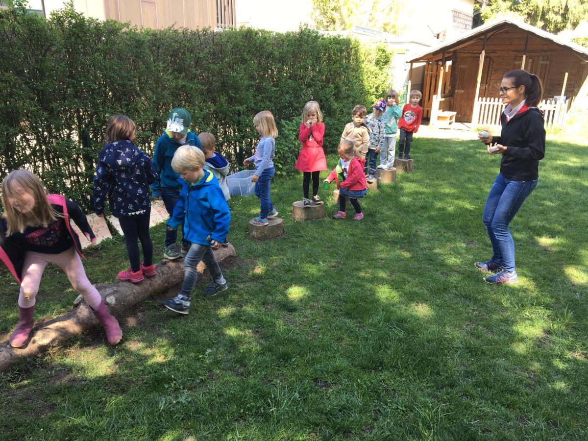 Eine Kindergartenmutter gestaltete tolle Holztafeln mit Bewegungsvorschlägen. Bei einer spielerischen Einführung, machte sie die Kinder damit vertraut.