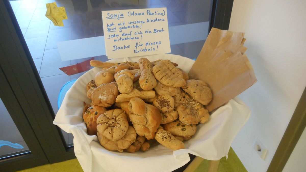 Sonja Haider, eine Mama aus dem Gesundheitsteam, erklärte sich bereit mit unseren Kindern Brot zu backen.