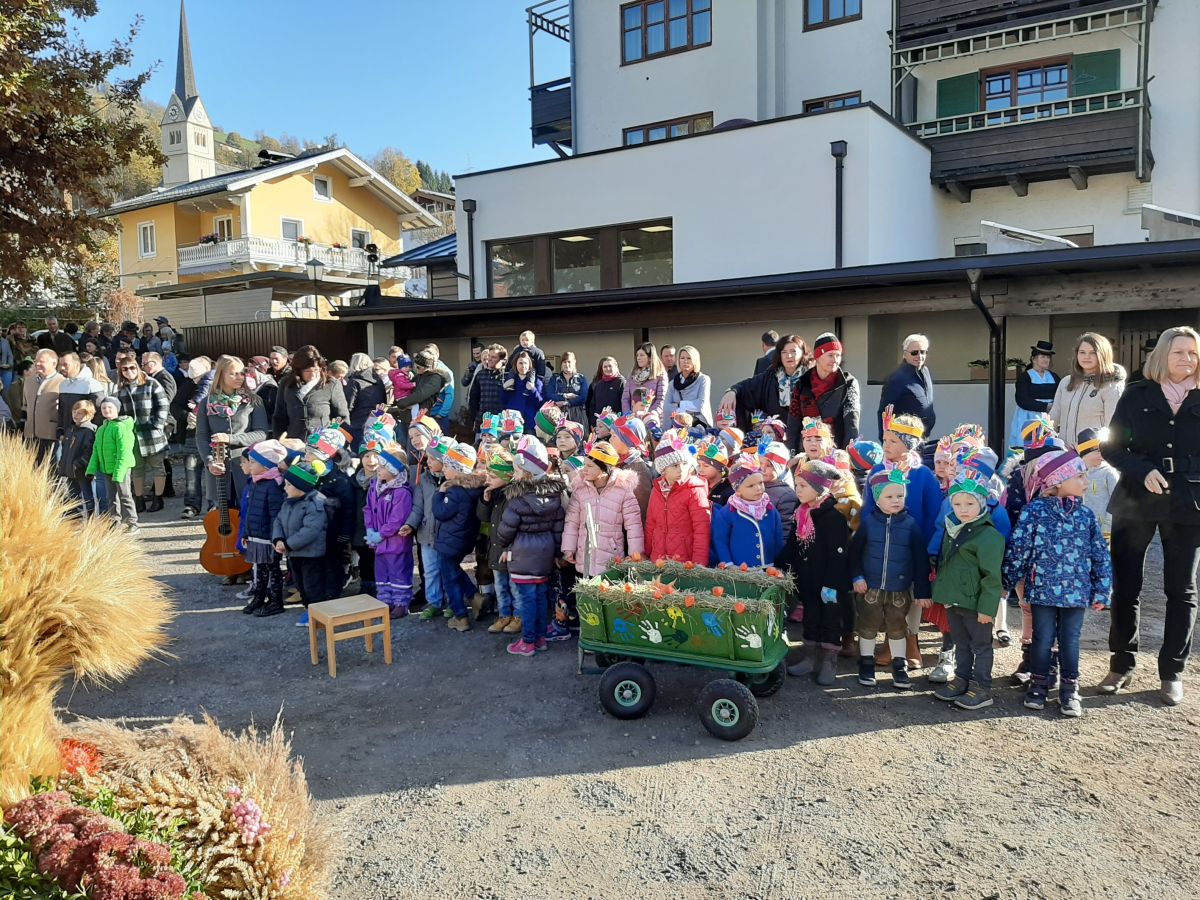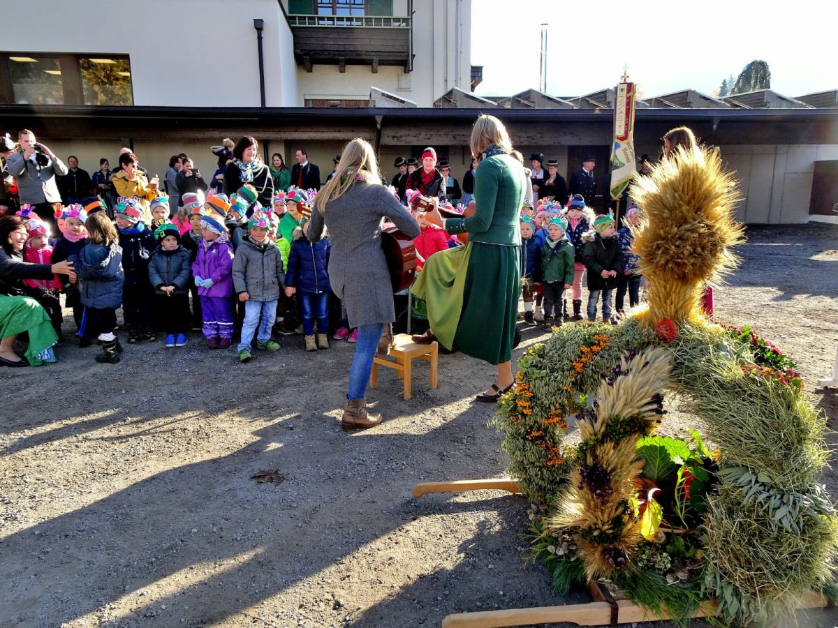 An einem herrlichen Spätsommertag war es endlich soweit: Gemeinsamen mit der Pfarre, den Eltern und Verwandten unserer Kinder, den ortsansässigen Vereinen und vielen anderen Mitbürgern feierten wir den Festakt am Postplatz. Im Anschluss ließen wir uns die selbstgekochte Suppe und das leckere Erntdankbrot schmecken. Wie in unserem Erntdanklied: "Danke, sag' ich leise dann..."