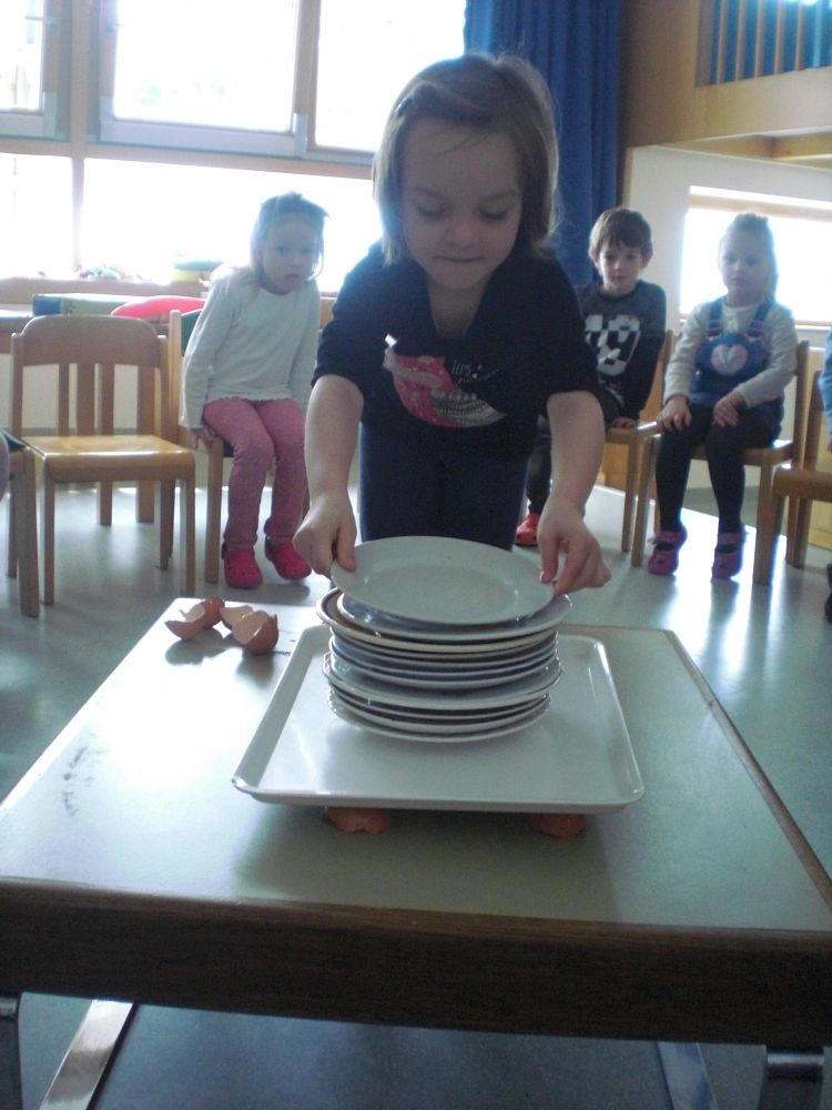Als Nächstes wollten wir wissen, wie vieleTeller 4 rohe Eier gemeinsam aushalten. Es waren sagenhafte 16 Teller!