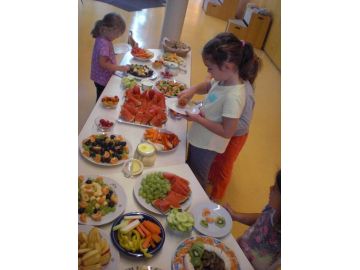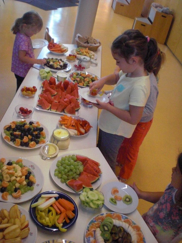 Seit einigen Jahren gibt es in unseren Kindergarten jeden Freitag einen besonderen Tag, an dem es ein gesundes Jausen Buffet gibt.