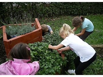 Das Geschenk unserer ehemaligen Vorschulkinder - unsere Kräuterschnecke im ÜKG-Garten - haben wir im vergangenen Herbst schon fleißig ausgenutzt.