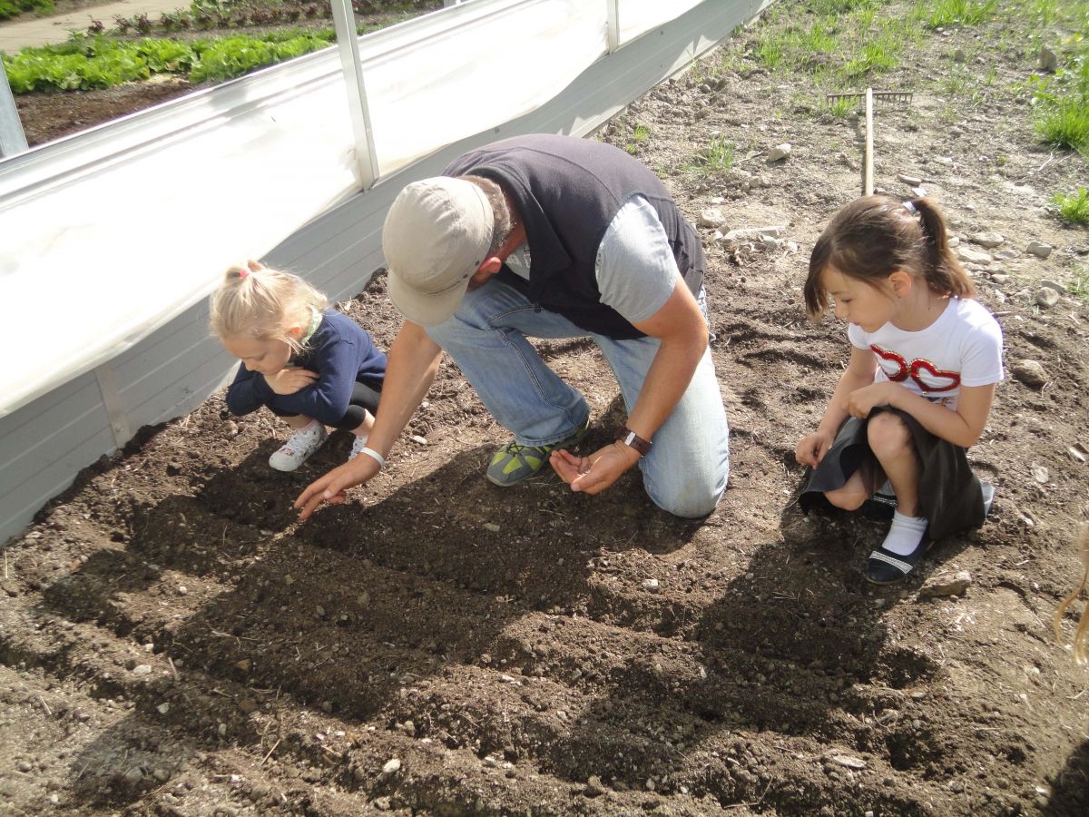 Gemeinsam mit dem Gärtner Toni haben unsere Kinder ihren eigenen „Regenbogen-Gemüsegarten“ angelegt, den sie in regelmäßigen Abständen selbstständig betreuen.