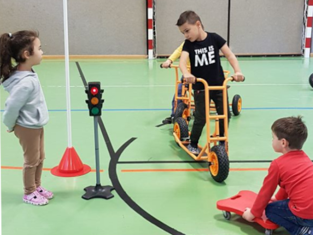 Neben dem freien Erproben der neuen Fahrzeuge, sowohl im Innenraum (Schulturnsaal) als auch im Freien, wurden zahlreiche spannende Aktivitäten mit und rund um Fahrzeuge, sowie deren Nutzung im „Verkehr“, umgesetzt.