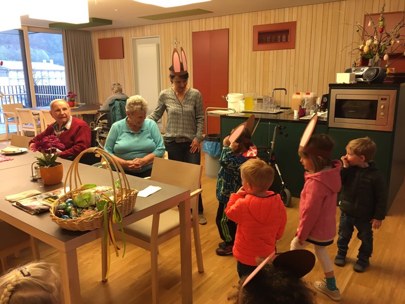 Durch regelmäßige Besuche im benachbarten Seniorenwohnheim wird die Erfahrungswelt von Alt und Jung positiv beeinflusst.