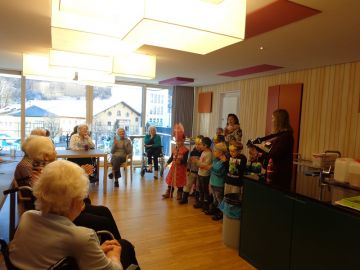 Mit Liedern, Gedichten und Selbstgebasteltem erfreuen wir einmal im Monat die Seniorinnen und Senioren, und knüpfen prägende und wertvolle Kontakte zwischen den Generationen.