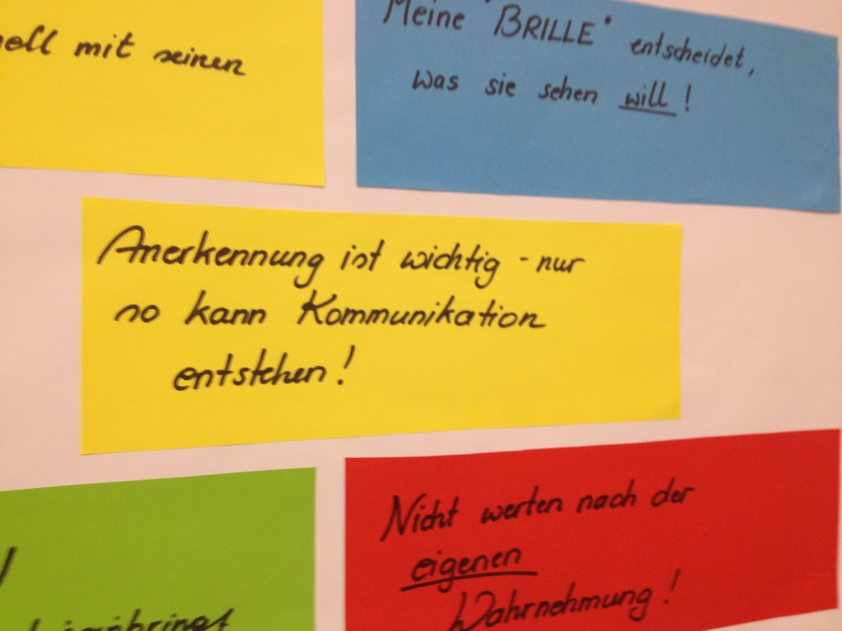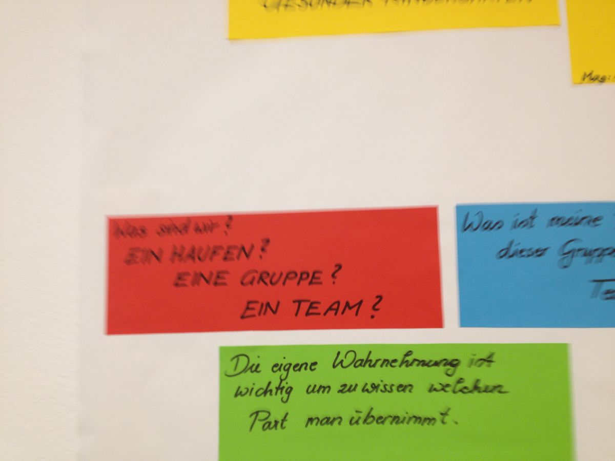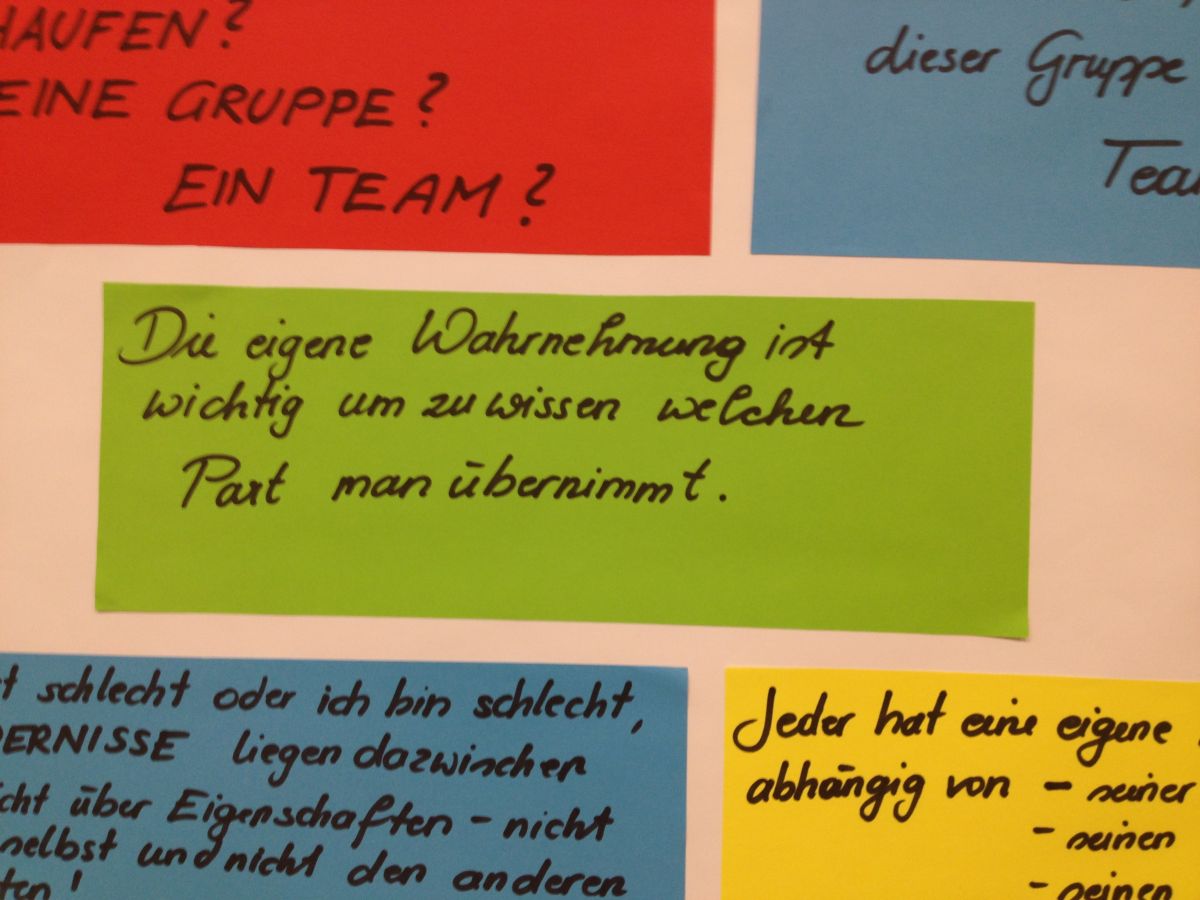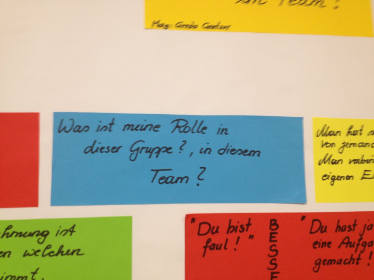 Viele sind gekommen, angereist aus den Gauen und der Stadt, um sich mit Frau Mag. Gerda Gratzer auf dieses Thema einzulassen. Mit Mut und Humor konnten die PädagogInnen in den vielen Übungen, die angeboten wurden, Wissen zu Haltung und Wahrnehmung und Kommunikationsformen erleben, reflektieren und mitnehmen. Im Kindergarten Maishofen steht alles wunderbar auf Kärtchen zusammengefasst für die Teammitglieder, die beim Treffen nicht dabei sein konnten. Der gute Geist ist also auch mit heimgereist. Dank an Magdalena Böhm, die ihren Transport allen zur freien Verfügung stellt, vielen Dank! (im Anhang)