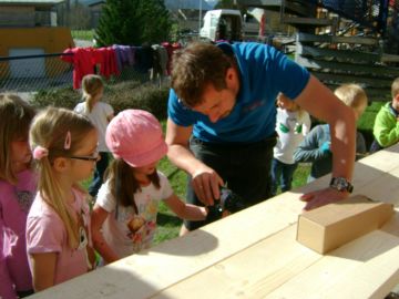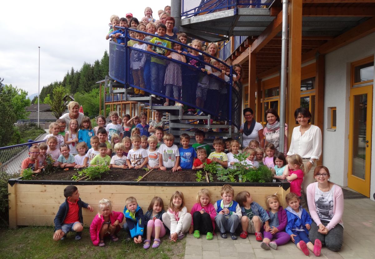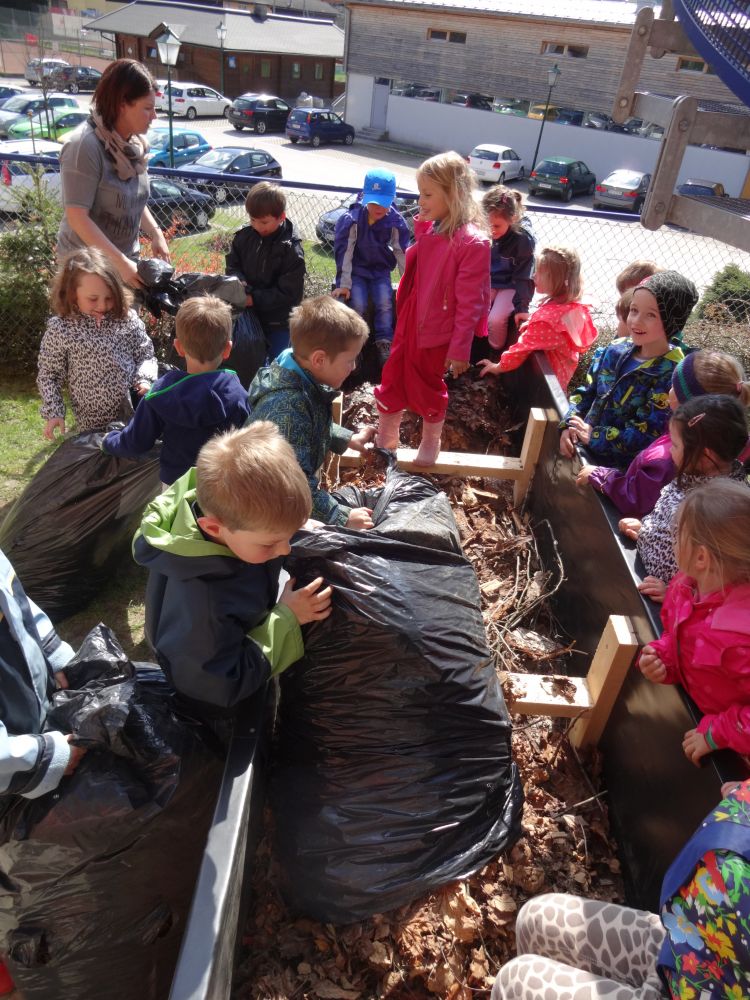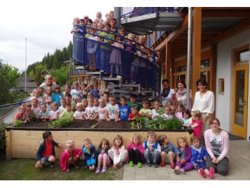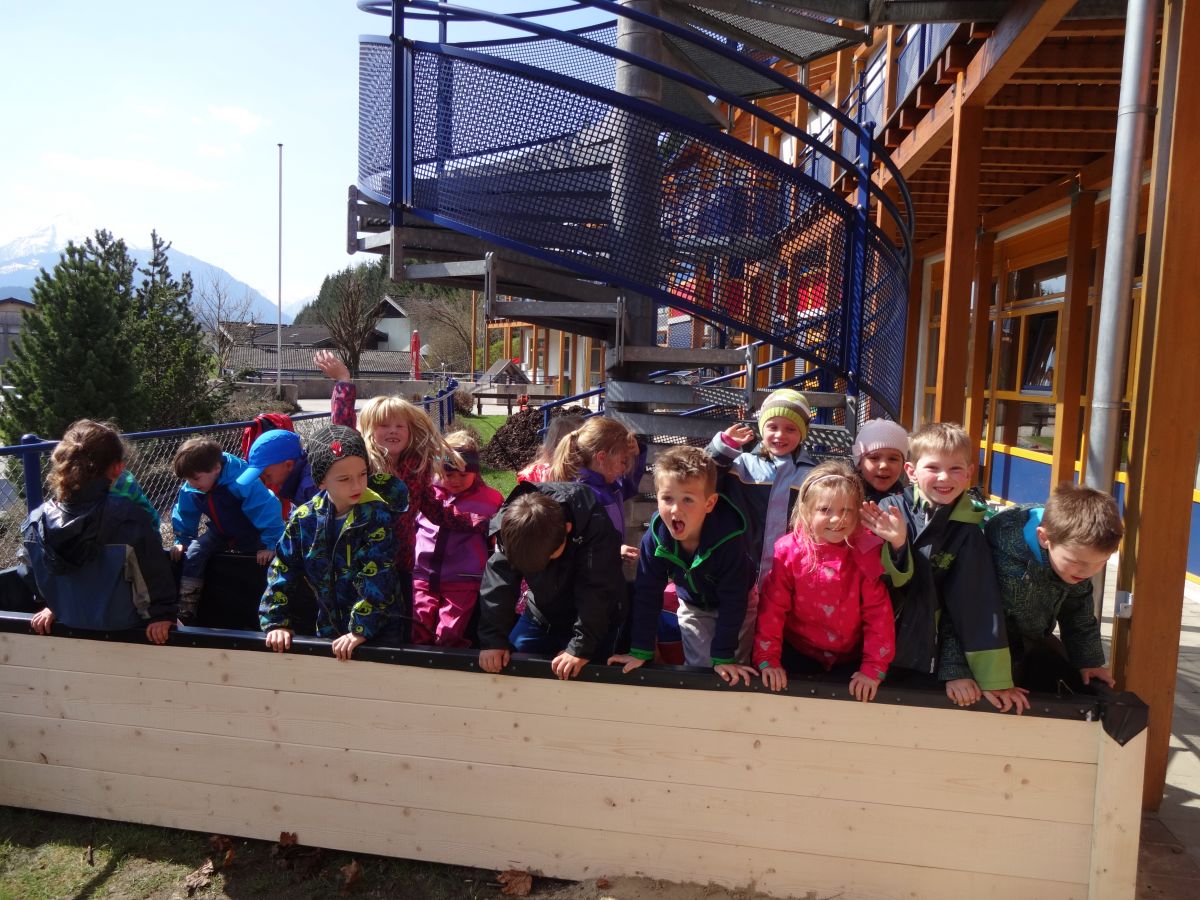 Im Zuge unseres Jahresprojektes "Gesunder Kindergarten" konnte der schon lang gehegte Wunsch, die Errichtung eines Hochbeets, im Gemeindekindergarten Eben/Pg verwirklicht werden. Dank großzügiger und tatkräftiger Unterstützung unserer engagierten Eltern (Holzspende bzw. Bau) unter Mithilfe fleißiger Kinderhände entstand innerhalb kürzester Zeit ein tolles Hochbeet. Gemeinsam wurde es mit allen notwendigen Materialien befüllt, ein paar Tage später bepflanzt und eingesät.