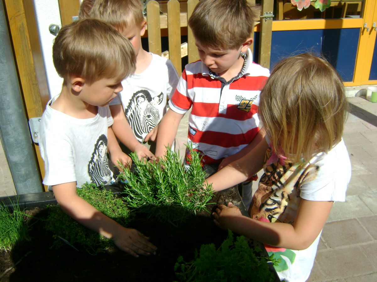 So konnten alle Entwicklungsschritte, von der Planung - zur Durchführung - Bau - Materialbeschaffung - Befüllung und letztendlich Bepflanzung und Pflege miterlebt werden. Nun freut sich das ganze Kindergartenhaus auf die große Ernte!