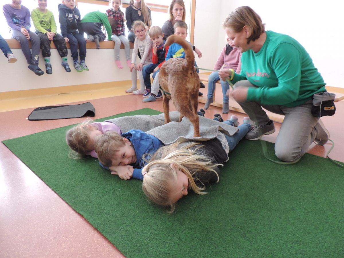 Die Kinder hatten die Möglichkeit mit einem Therapiehund verschiedenste Spiele und Aktivitäten auszuprobieren. Außerdem wurden ihre Sinne für einen guten und sicheren Umgang mit Hunden im Alltag geschärft.