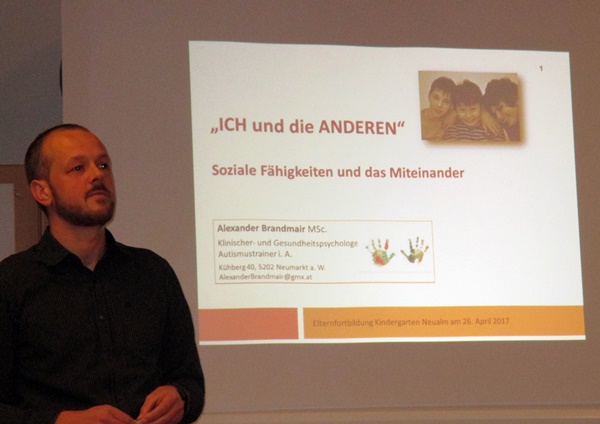 - Eine Elternfortbildung über die Entwicklung sozialer Fähigkeiten und deren Auswirkungen auf unser Miteinander in Familie, Freundeskreis und Kindergarten.