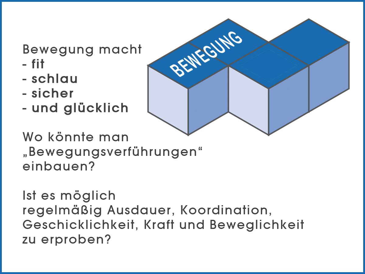 Aktivitäten zu den fünf Säulen stehen im Vordergrund, die Gesundheitsförderung mit Freude lebendig werden lassen.