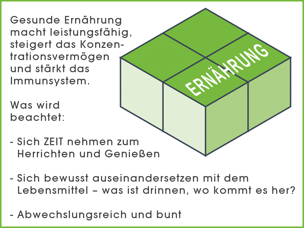 - gesundheitsfördernde Arbeits-und Lernbedingungen zu schaffen