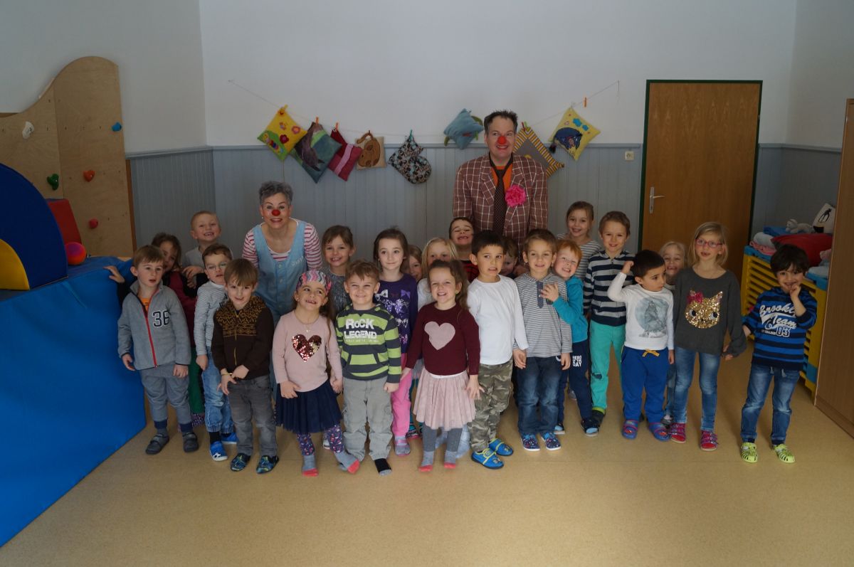 Am Freitag, den 3. Februar besuchte uns das Clown- Dua Kolilibri "Cosimo" und "Pünktchen" im Kindergarten Werfen.Mit dem Programmtitel "Ich bin OK - du bist OK" sorgten die beiden Clowns mit einem pädagogisch wertvollen Hintergedanken und einer lustigen Umsetzung dessen für viel Gelächter und Freude bei unseren Kids - und Lachen ist ja schließlich gesund! :-)