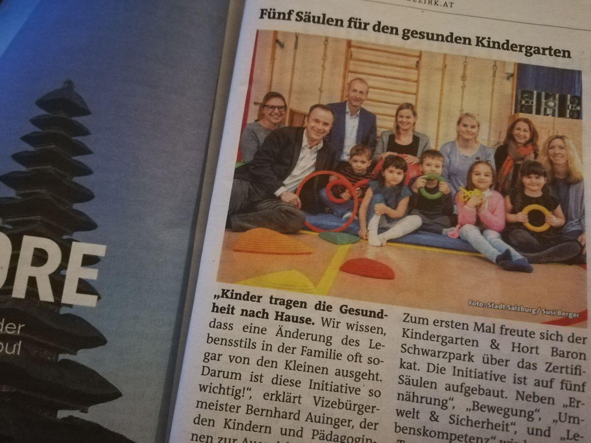 Auch das Stadtblatt berichtet am 4./5. Dezember 2019 vom Besuch des Vizebürgermeisters im KG Baron-Schwarzpark und stellt die fünf Säulen des Gesunden Kindergartens vor.. Vielen Dank!