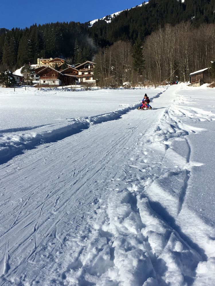 Wir, die Kinder der alterserweiterten Gruppe und des Kindergartens Krimml nutzten den tollen Schnee und die Sonnenstrahlen der letzten Wochen um die ortseigene Rodelbahn zu testen.
