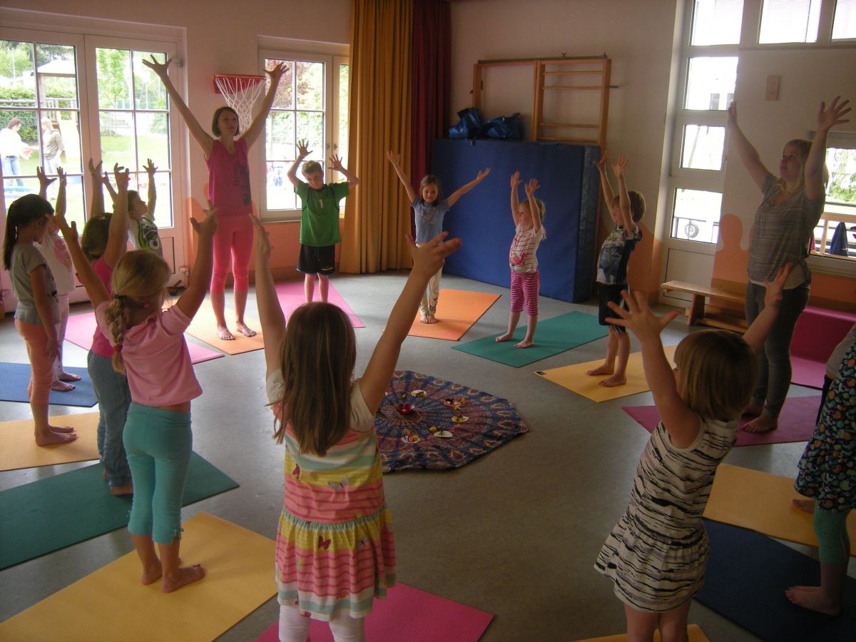 Yoga stärkt die Konzentration, das Gleichgewicht und die Motorik. Zudem dienen die Übungen dazu, die Kinder zu beruhigen, Verspannungen zu lösen und Konzentrationsschwächen abzubauen. Yoga kann auch Haltungsschäden vorbeugen oder korrigieren - und das auf spielerische Art und Weise. Denn die Asanas (Körperhaltungen) tragen meist Namen, die an die Tier - und Pflanzenwelt erinnern und die Phanasie der Kinder anregen.