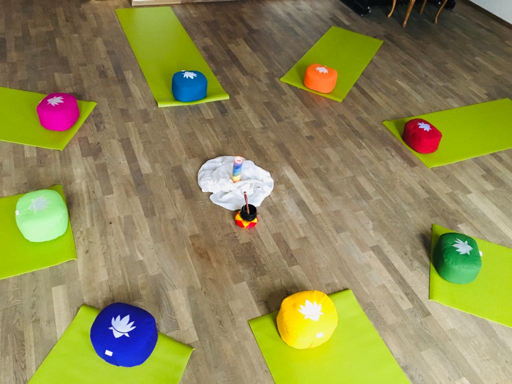 Um dies umzusetzen war jedoch ein wenig Planung nötig. Ein ruhiger Raum musste gefunden werden und eine gemütliche Atmosphäre sollte entstehen. Das Raumproblem war schnell geklärt, denn die Pfarre St. Elisabeth stellte uns einen wunderschönen, hellen Raum mit großen Fenstern gerne zur Verfügung. Nun mussten wir nur noch sehen wie wir die kindgerechten Yogamatten und Kissen besorgen konnten, damit das Projekt starten konnte. Dank AVOS & dem GESUNDEN KINDERGARTEN bekamen wir hier die Möglichkeit dazu, denn ein Förderprojekt machte die Anschaffung möglich. Nach einer kurzen Wartezeit kamen die Matten und Kissen an und unser Herzensprojekt konnte starten.