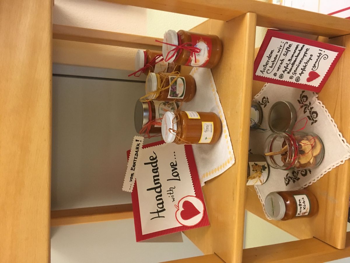 Gemeinsam backten wir einen Apfel - Bananen Kuchen ohne Zucker,ein Dinkelbrot und stellten Apfelchips, Bananenmarmelade, Kürbis- Karottenmarmelade, Gemüsechips, Apfelstrudel im Glas, verschiedene Smoothies her.