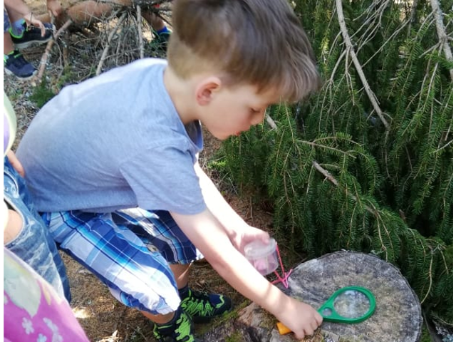 In der Mäusegruppe fand vom 3. Juli – 7. Juli 2019 die Waldwoche statt. Die Kinder fuhren jeden Tag gemeinsam mit den zuständigen Pädagoginnen mit einem Taxi vom Kindergarten zu einem Waldgebiet am Grafenberg in Wagrain. Es wurden verschiedene Aktivitäten im Wald unternommen. Das absolute Highlight war das selbstständige Basteln eines „Zwergerls“ aus Holz. Die Kinder bauten auch ein kleines Häuschen als Unterkunft für die Zwerge. Täglich wurden sie am Morgen begrüßt und zum Abschluss des Tages verabschiedet. Natürlich wurden auch Aktivitäten gemacht, welche die Wahrnehmung der Kinder schulen und fördern. Einerseits wurden aus vielen Ästen Waldsofas erstellt und andererseits wurde das Zahlenland mittels Blätter und Tannenzapfen geübt. Zu absolvieren gab es auch einen Barfußweg. Dieser wurde mit geschlossenen Augen durchquert. Zur Orientierung gab es als Hilfe ein gespanntes Seil. Neben diesen spannenden Tätigkeiten wurden auch Spiele, wie das Suchen von Wäscheklammern und Schmetterlingen, gespielt. Das gemeinsame Jausnen fand immer auf den selbsterstellten Waldsofas statt. Zu guter Letzt besuchten wir einen Waldameisenhügel. Unsere Waldwoche ist wie jedes Jahr super gelungen und wird auch sicher in den nächsten Jahren natürlich wieder stattfinden!