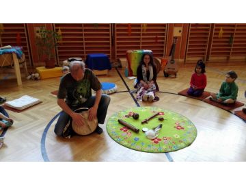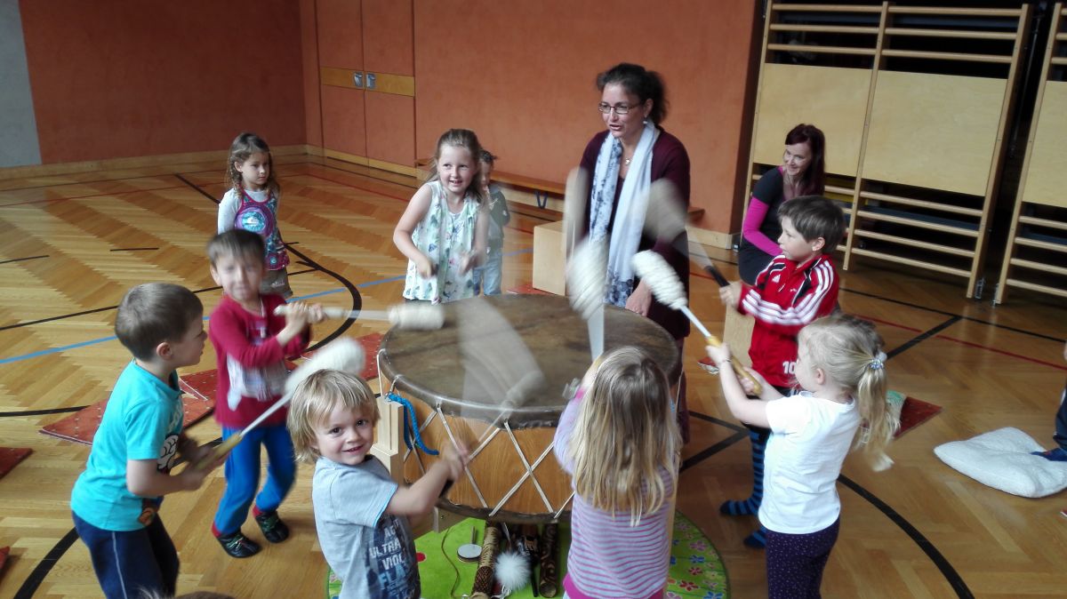 Der zweigruppige Gemeindekindergarten Stuhlfelden hat als „Gesunder Kindergarten“ in Zusammenarbeit mit der Musik- und Tanzpädagogin, Alexandra Duzikova und ihrem Mitmusiker Hans Jürgen, ein dreitägiges Musikprojekt gestartet. Ein Projekt, das uns in die Welt der Klänge verschiedener Kulturen und Völker hineinschnuppern, verschiedene Trommeln und ein Kotamo kennen lernen ließ.,Im Wechsel zwischen laut und leise, Ruhe und Bewegung, aktivem Mittun, Zuhören und Lauschen, wurden wir auf musikalische und tänzerische Art verzaubert.