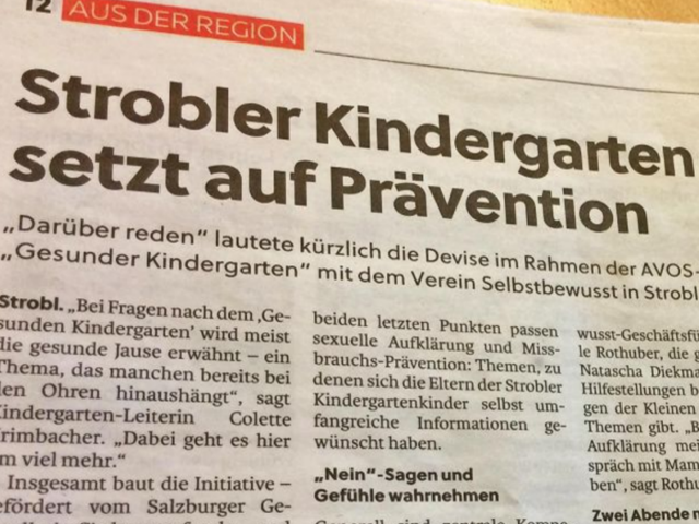 „Darüber geredet“ haben die Eltern der Strobler Kindergartenkinder mit Gabriele Rothuber und Natascha Diekmann. Dabei hat sich der Verein Selbstbewusst an zwei Elternabenden ganz den Themen „Aufklärung“ und „Missbrauchs-prävention“ gewidmet. Im Rahmen des „Gesunden Kindergartens“, der auf fünf Säulen aufbaut, passen diese heiklen Themen zu den Punkten „Lebenkompetenz“ und „materielle Umwelt und Sicherheit“. Darüber hinaus sind hier zentrale Kompetenzen wie Selbstbehauptung, „Nein-Sagen“ und Gefühle wahrzunehmen fest verankert. Welche Themen in den Vordergrund gerückt werden sollen, entscheiden die Kindergärten gemeinsam mit den Gesundheitsbeauftragten vor Ort und den Eltern.