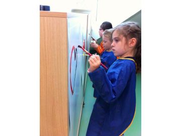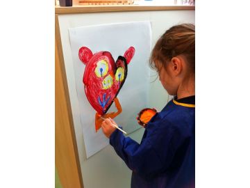In diesem neu geschaffenen Raum dürfen die Kinder frei malen und gestalten. Sie können wie richtige Künstler an der Staffelei oder an der Malwand stehen, können mit Farben und Formen experimentieren, das Spiel damit in vollen Zügen genießen, ihre Gefühle ausdrücken und zu Papier bringen, sich entspannen und neue Maltechniken kennenlernen. Es gibt hier kein Falsch oder Richtig, es muss nichts erklärt oder gewertet werden und das Malen an sich ist wichtiger, als am Ende ein "schönes Bild" zu haben.