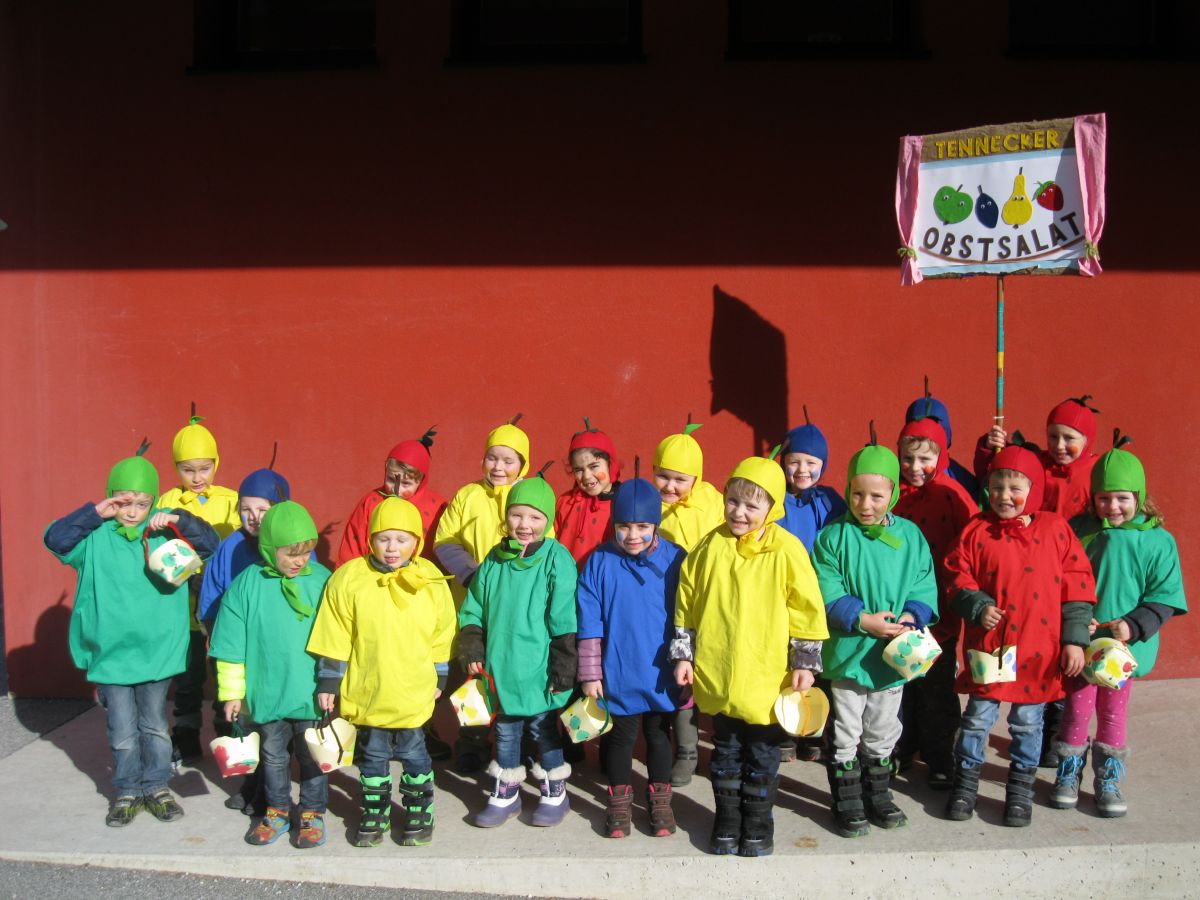 Der Kindergarten Tenneck verwandelte sich heuer im Fasching, passend zum Projekt, in einen Obstsalat!