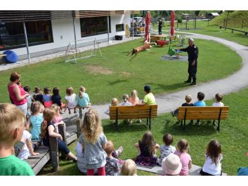 Die Show stahl schließlich aber Polizeihund Hacoon (Hacky) aus St. Johann den uniformierten Beamten, der mit zu uns in den Kindergarten kam.
