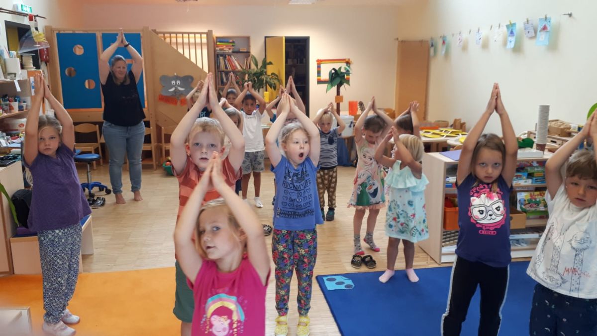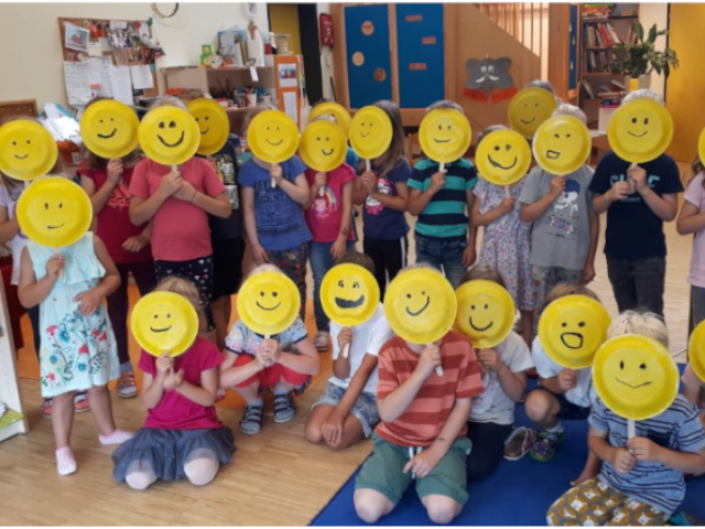Die vorletze Kindergartenwoche stand bei uns im Zeichen der großen Gefühle. Wir versuchten, Gefühle zu benennen und Gesichtsausdrücken zuzuordnen. Die Kinder überlegten, was sie glücklich und was sie traurig macht. Die tägliche Yogaeinheit half uns dabei, in unseren Körper zu spüren. Das Buch "Ein Dino zeigt Gefühle" unterstützte uns beim Erkennen verschiedenster Emotionen. Als Abschluss durfte jedes Kind seine momentane Stimmung künstlerisch auf einem Pappteller in Form einer Maske darstellen. :)