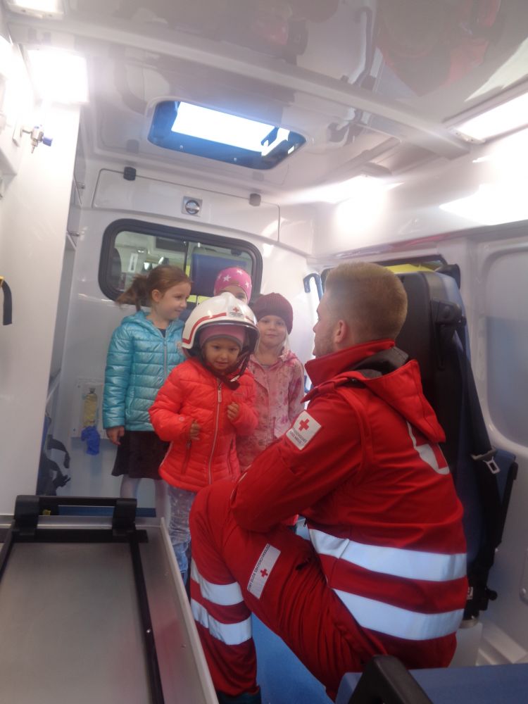 Aufgrund eines Rettungseinsatzes in der Gruppe wurde von der Leiterin ein Rettungswagen organisiert, welcher von den Kindern „begutachtet“ werden durfte.