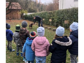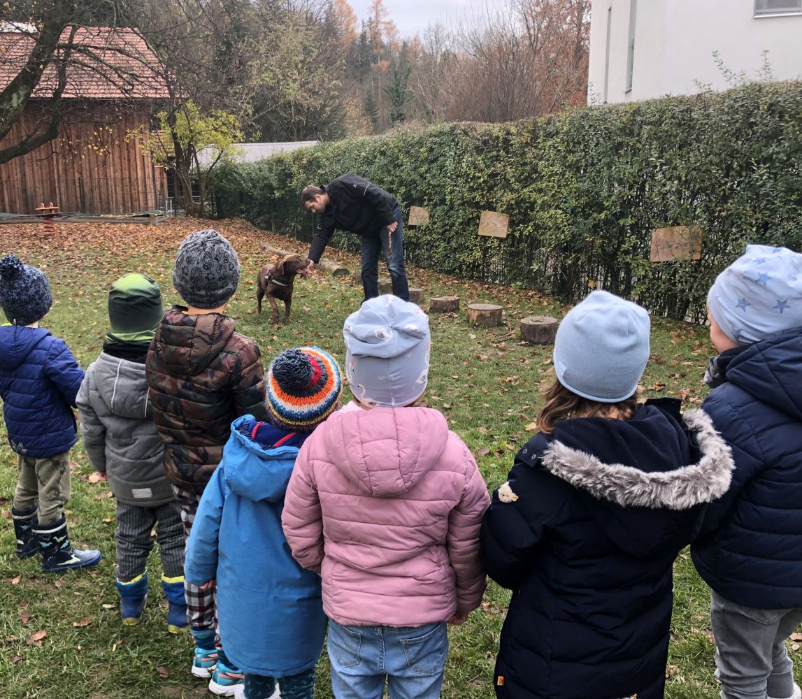 Das Highlight für die Kinder war, dass uns ein lebendiger Hund im Kindergarten besuchte.