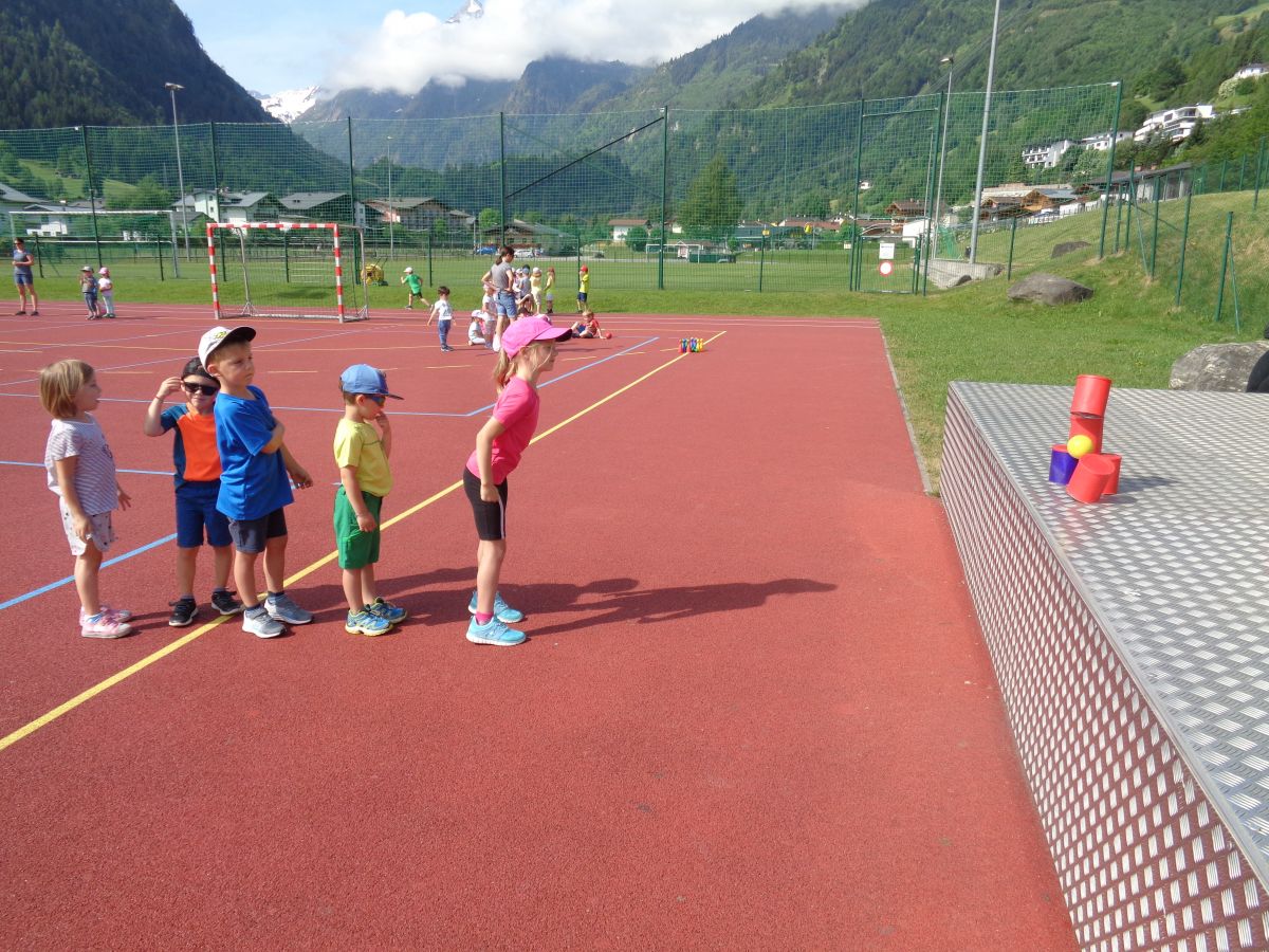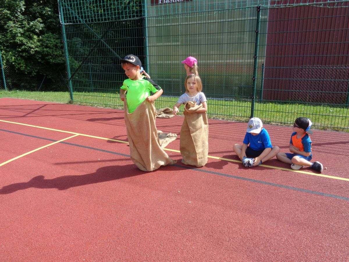 Beim Spiel- und Sportfest ging es bei den Kindergartenkindern lustig zu. Dosenwerfen, Wasserschöpfen, Weitspringen, Sackhüpfen und noch vieles mehr haben die Kinder zum Schwitzen gebracht. Nach so viel sportlichen Aktivitäten haben sich alle eine gesunde Jause verdient!