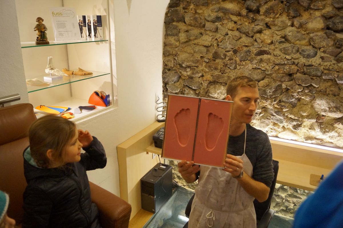 Wir durften uns alles genauestens ansehen und die Kinder erfuhren, was es alles braucht, um unsere Füße gesund zu halten. Vom Abmessen der Füße, über einen lustigen Barfuß- Parkour bis hin zum Entwerfen von Schuhen und Schuheinlagen war alles dabei. Die Mitarbeiter des Schuhhaus Pondorfer gaben sich sehr viel Mühe und beantworteten unseren Kindern alle wichtigen Fragen zum Thema Schuhe und gesunde Füße. Es war wirklich ein sehr spannender und lustiger Tag!