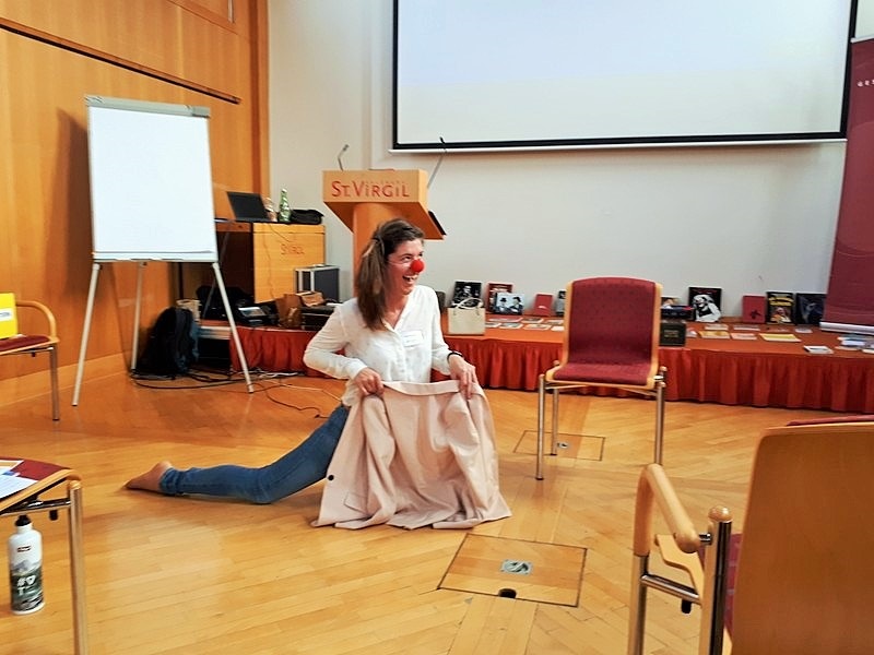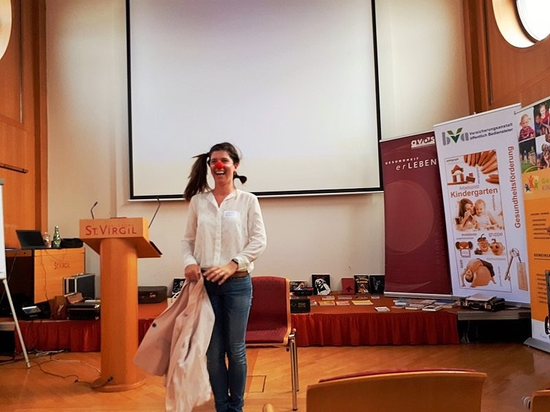 "Die kleinste Maske der Welt - Die Pappnase" – ein Vortrag von Heimo Thiel, ClownDoctor, Zirkuspädagoge und Schauspieler, rundete die Tagung ab.