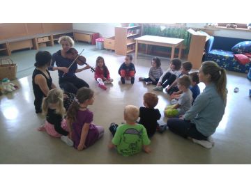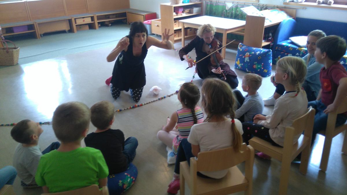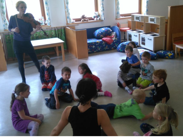 Gespannt lauschten unsere Kinder, wie wunderbar das Geigenspiel von Gudrun klingt. Der Tanz von Pascale und eine Geschichte über die Nacht und den Tag ließ sie eintauchen in eine Geschichte, bei der jedes Kind seine eigene Fantasie spielen lassen konnte.