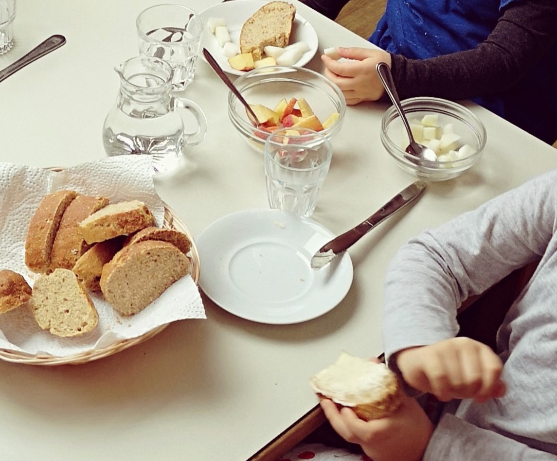 Zu guter Letzt konnten wir auch noch unsere gustatorische Wahrnehmung fördern – wir haben die selbstgemachten Brote am Nachmittag zur Jause verspeist.