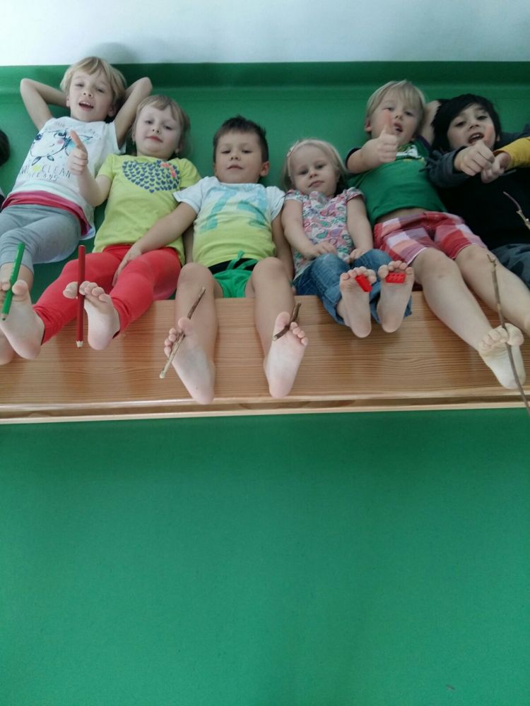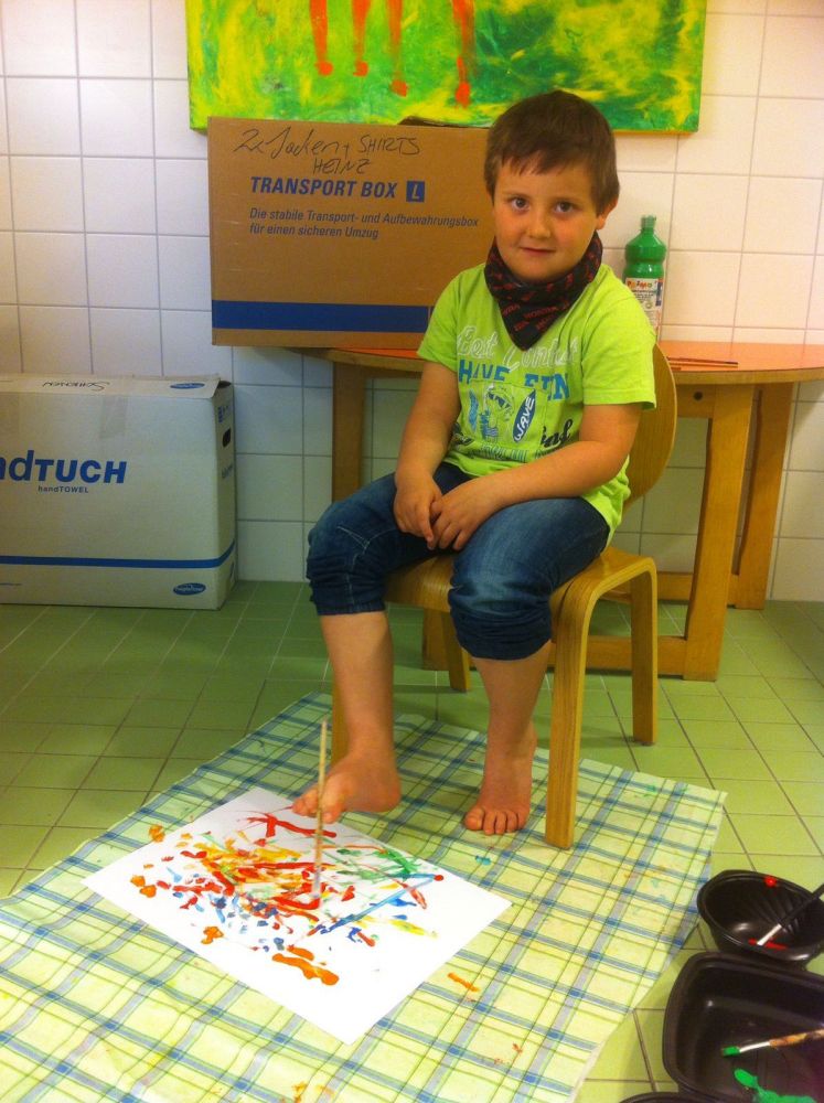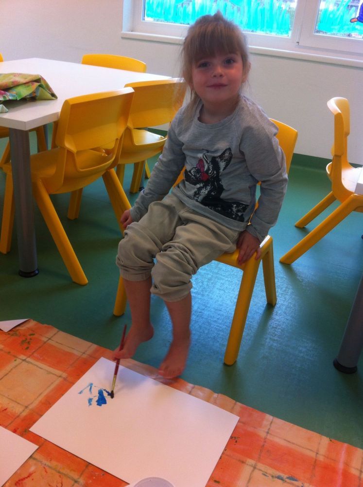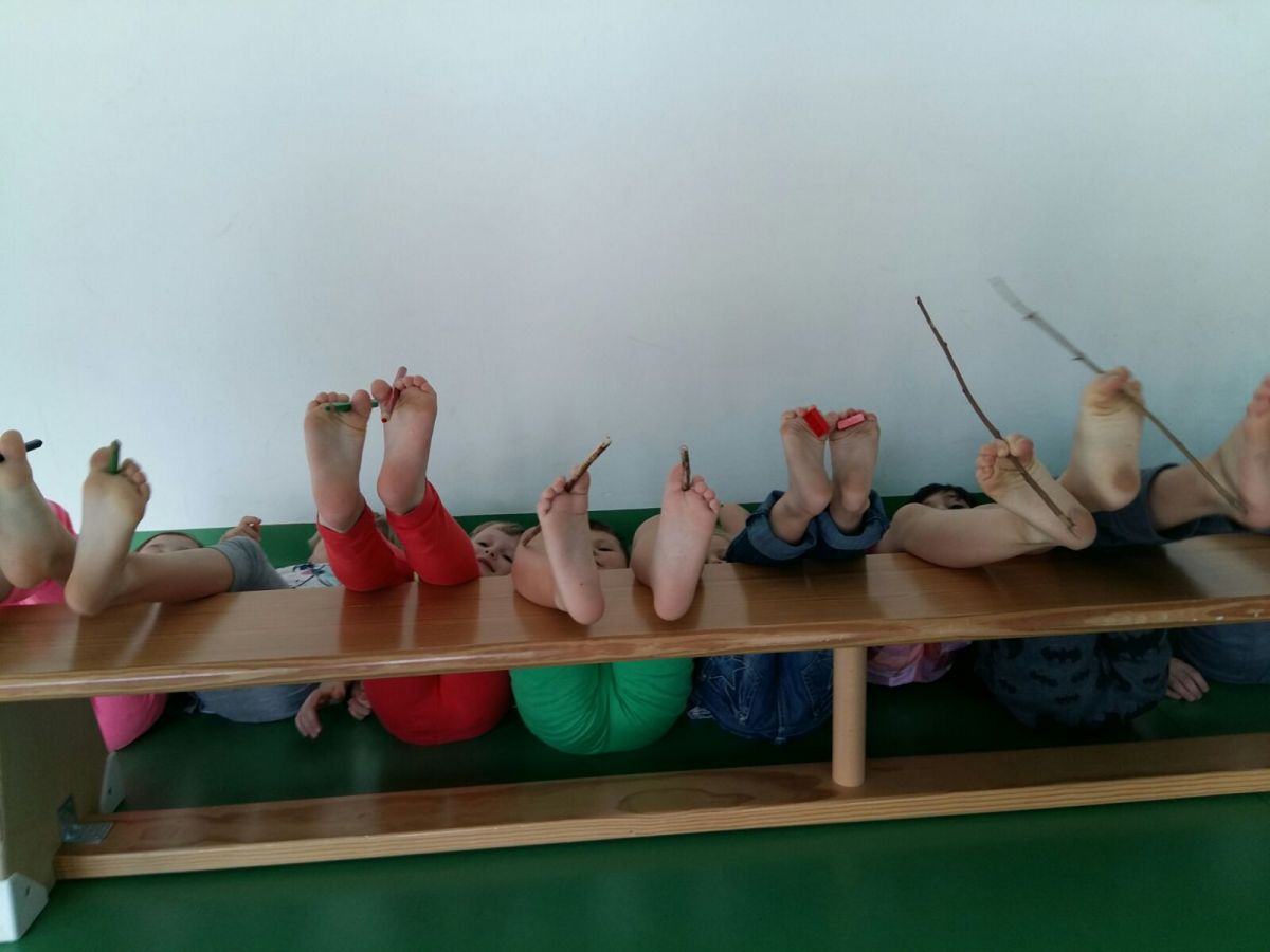 Wir beschäftigen uns schon einige Zeit intensiver mit unseren Füßen und Zehen und haben sie massiert, damit geturnt und balanciert, waren kneippen und seit Neuestem sind wir unter die Fußkünstler gegangen. Gar nicht so einfach nur mit den Zehen zu malen, aber es macht Riesenspaß!