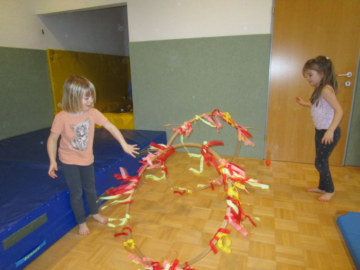 Passend zum Zirkus wurde das Haus mit selbstgebastelter Dekoration verschönert. Auch in den Gruppen wurde das Thema aufgegriffen und mit verschiedenen Angeboten gestartet. Eine Gruppe ersetzte den Morgenkreis durch eine Zirkusmanege, andere richteten Akrobatikecken sowie Jonglierbereiche ein und boten Möglichkeiten zum Verkleiden an.
