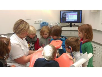 Gemeinsam mit den Vorschulkindern durften wir in das Zahnambulatorium in der Gebietskrankenkasse in Salzburg kommen. Wir fuhren mit dem Bus zum Hauptbahnhof und gingen 5 min zum Gebäude. Dort wartete schon eine nette Dame auf uns, die uns in einen Behandlungsraum brachte. Jedes Kind durfte die unterschiedlichsten Geräte ausprobieren und sich auch einmal auf den Behandlungsstuhl legen. Dadurch sollten die Kinder die Angst vorm Zahnarzt verlieren oder besser gesagt, nie bekommen. Danach bekamen wir eine Gesunde Jause bereitgestellt, mit belegten Broten, Obst und Gemüse sowie Apfelsaft.