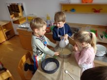 Beim gemeinsamen Kochen in den verschiedenen Gruppen dürfen bereits die Jüngsten mithelfen. Ob beim Schneiden, Rühren, Kneten- auch kleine Hände können...