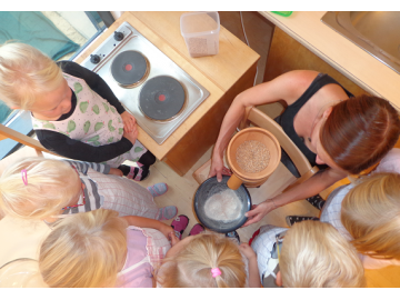 Fast jeden Tag genießen die Kinder aus den Krabbelgruppen die frische Luft und bewegen sich in der Natur. Zwischen Freispielzeit und Mittagessen toben,...